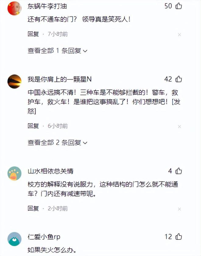 “校方的解释没有说服力,这种结构的门怎么就不能通车?门内还有减速带呢。” 确实,仅仅从门的结构来看,似乎具备通车的条件。那减速带的存在,不更说明了曾经有通车的设想或者规划吗?校方仅仅一句不通车的解释,显得如此苍白无力。