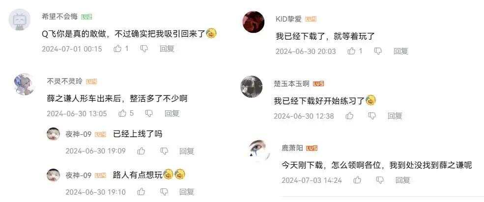 同时官方下场整活,带动薛之谦联动热度的提升,在B站相关视频播放量超过100万。薛之谦人形幻车不不单单给《QQ飞车手游》带来了流量,也带来了产品新生命力,不少薛之谦粉丝在整活视频评论“有点想玩了”“下载好开始练习了”,在对粉丝转化为新用户有较强推动力。