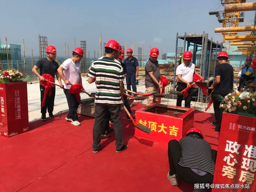 △鸿马建设公司项目负责人曾双喜发表讲线分,随着最后一方混凝土的顺利浇筑,现场活动气氛达到了高潮,礼炮齐鸣。在项目全体员工、设计、监理、施工方等合作伙伴的共同见证下,这个凝聚了香江人智慧与汗水的项目圆满封顶,至此,香江城市森林花园项目封顶仪式圆满完成。