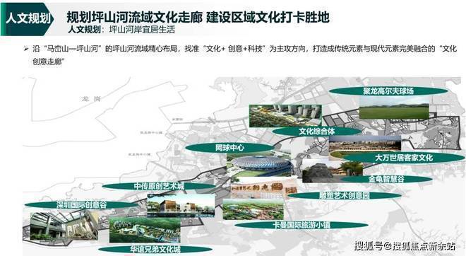 坪山体育中心,有深圳建造标准最高的坪山国际网球中心。项目东北侧拥有占地约10万㎡的坪山文化中心(简称“六馆一城”,文化馆、图书馆、影城、演艺中心、展览馆、美术馆、书城等)、华谊兄弟文化城等文化配套。未来,项目东侧约 4 公里规划了燕子湖国际会展中心,将打造成“深圳新城市会客厅”,国际会展中心、格兰云天星级酒店已经在运营,全面拉高坪山配套水平。