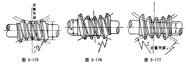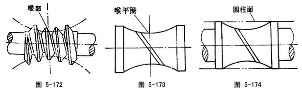 环面蜗杆中,齿顶圆环面的内圆所在部位,称环面蜗杆的喉部,它位在计算平面上,是蜗杆外廓尺寸最小的部位(图5-172)。