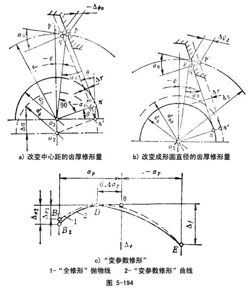 及分度挂轮速比,实现的近似“全修形”的一种修形方法。修形效果很接近“全修形”,然而其修形工艺比“全修形”有明显改善(图5-194)。