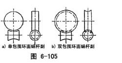 由环面蜗杆与其配对(对偶)蜗轮组成的蜗杆副图6-105。可分单包围环面蜗杆副和双包围环面蜗杆副两类。亦可按工艺参数变化情况分为“原始型”环面蜗杆副与“修正型”环面蜗杆副。