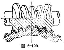 由平面齿轮(直齿或斜齿)与配对蜗杆组成的环面蜗杆副。属于单包围环面蜗杆副(图6-109)。通常是指一次平面包络环面蜗杆副。平面蜗轮副这个名词已不再应用。