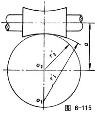 蜗杆节圆环面的母圆和蜗轮节圆不重合的环面蜗杆副。该蜗杆副和普通环面蜗杆副相比,加工和安装工艺都有较明显改善,并可实现“人工油涵”,改善润滑条件,故此,这种蜗杆副具有承载能力较大和传动效率较高的特性(图6-115)。